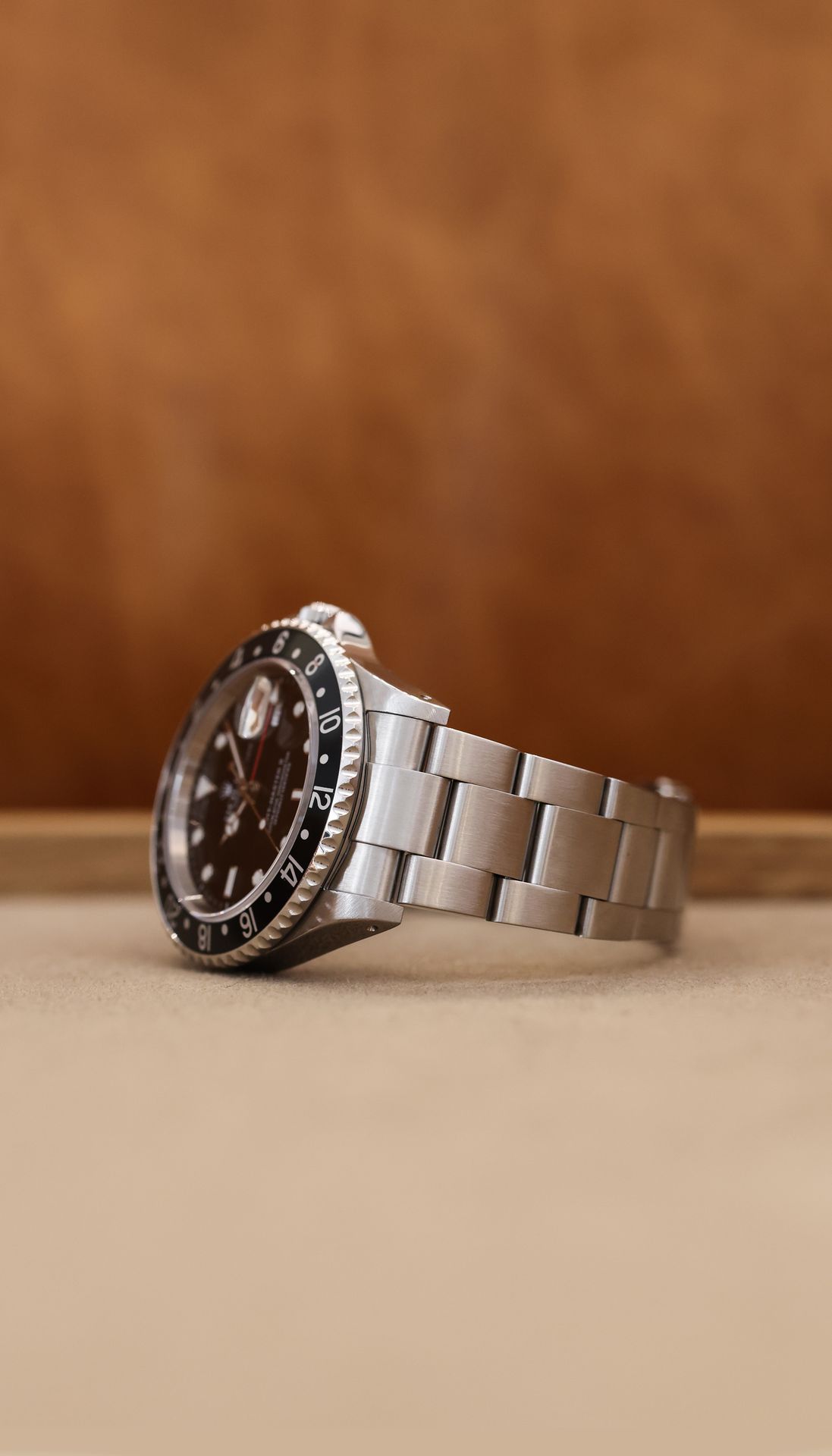 In 1954 Rolex presented the first GMT-Master ref. 6542, which indicates the time in two chosen time zones simultaneously via a 24-hours-hand and rotating bezel. Interestingly, the GMT-Master name was only registered one year later in April 1955. Only five years after its introduction, the reference 6542 was being replaced by the reference 1675. In 1983, Rolex introduced the GMT Master II which can display three different time zones through a now independent 24-hours-hand.
