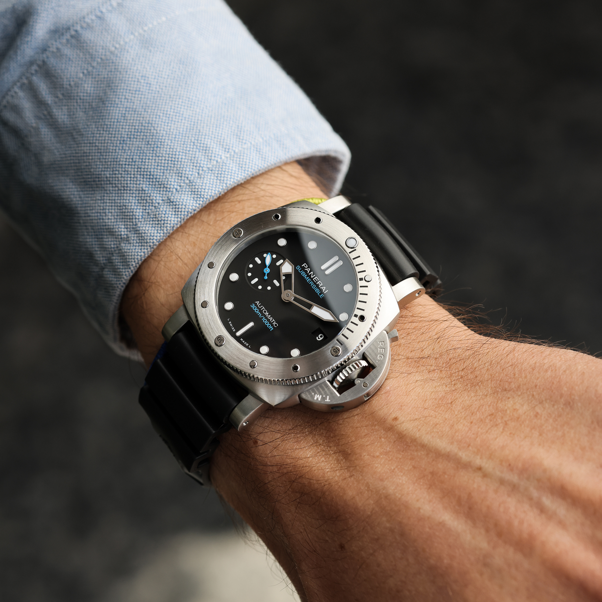 With the Submersible, Panerai renews with its great tradition of epic exploits in the depths of the sea. The design of the bezel is inspired by that of the watch created by Officine Panerai in 1956 for the Egyptian Navy known as “L’Egiziano”. This was an exceptionally large and robust watch with a case diameter of 60 millimeters.