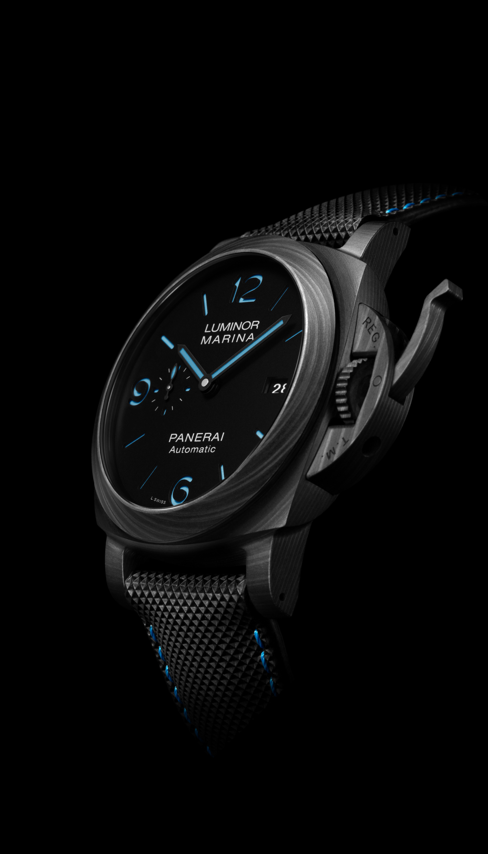 Carbotech™ is a composite material based on carbon fibre. Providing exceptional technical performance, carbotech has an uneven, matt black appearance, which varies according to the cutting of the material, giving each watch a unique character.