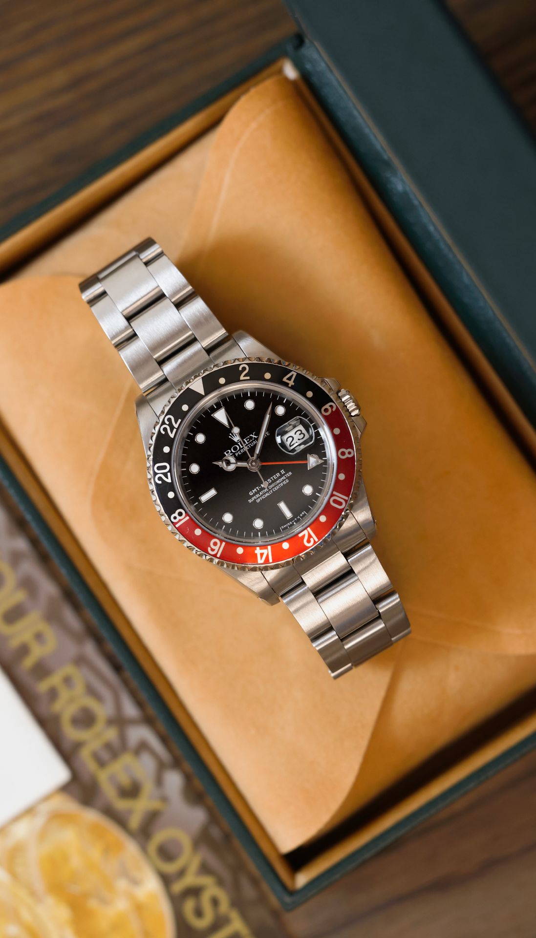 The present example is a GMT Master II ref. 16710 “Coke” from the year 1991 and is accompanied by its original certificate and box.