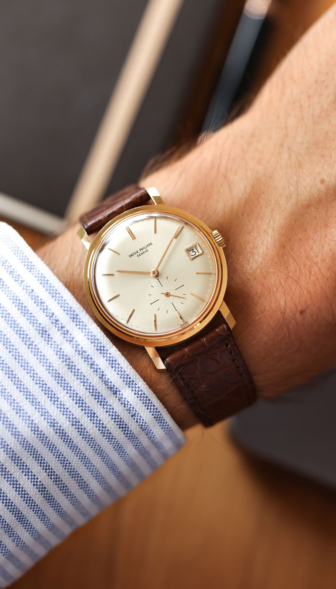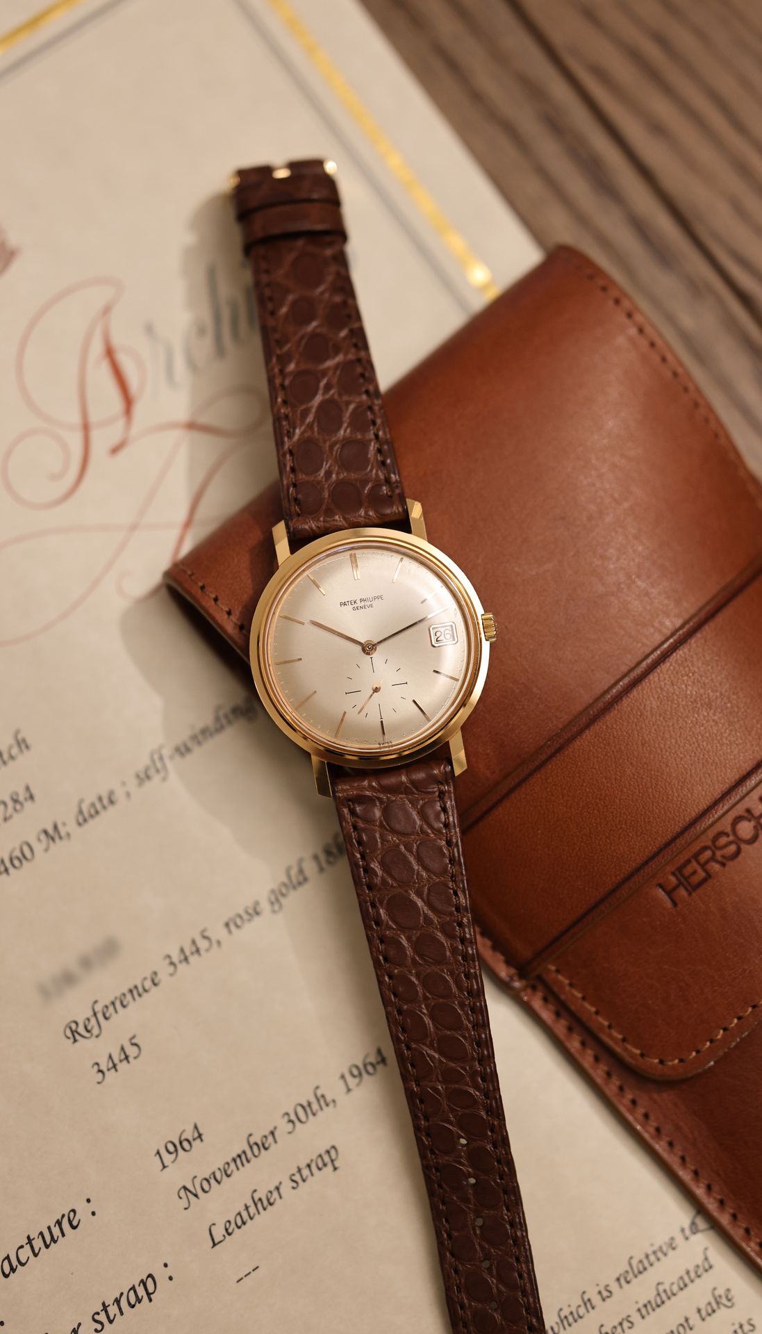 This particular Patek Philippe Ref. 3445 in rose gold from 1964 belongs to the first series.