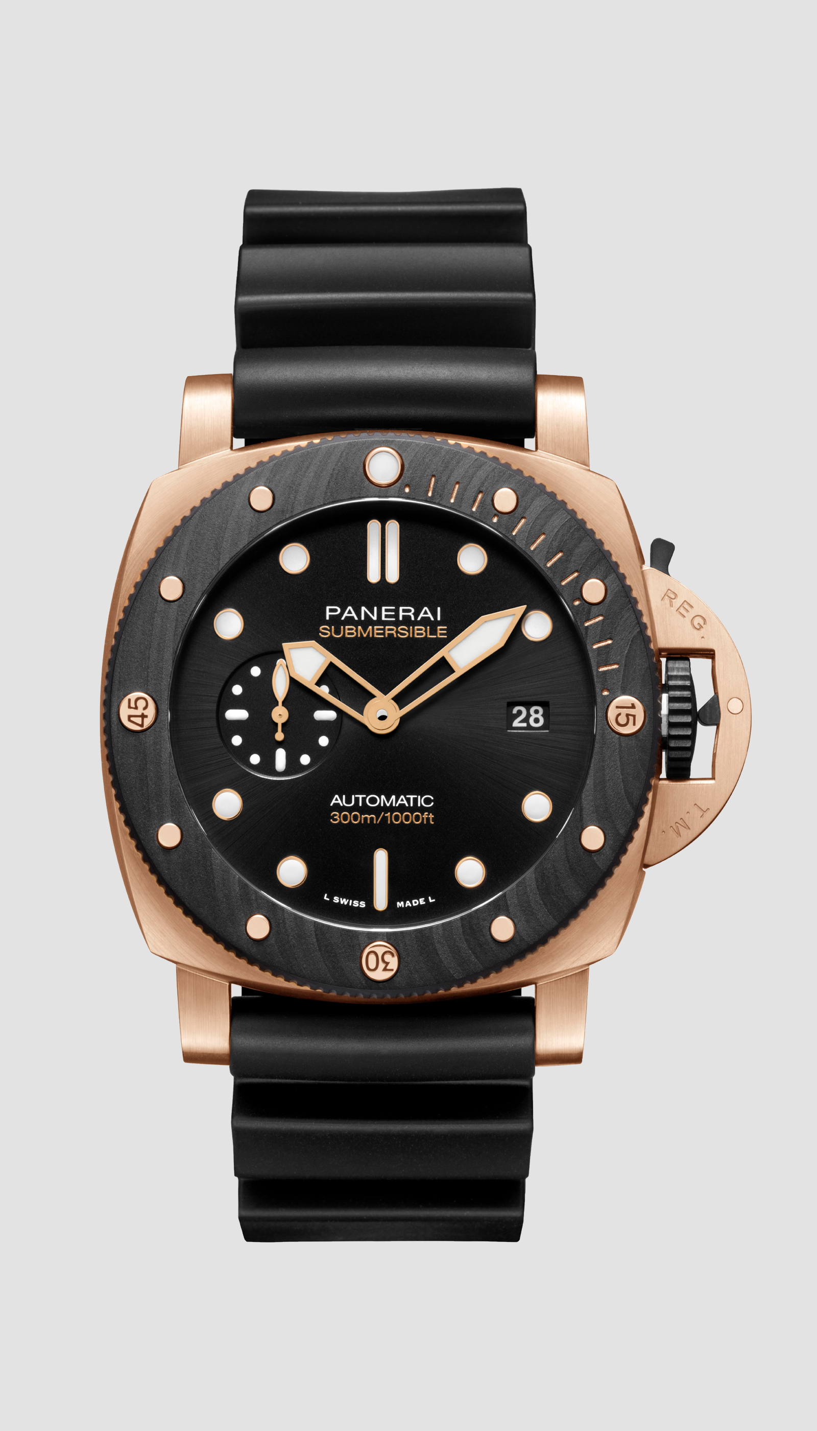 With the Submersible, Panerai renews with its great tradition of epic exploits in the depths of the sea. The design of the bezel is inspired by that of the watch created by Officine Panerai in 1956 for the Egyptian Navy known as “L’Egiziano”. This was an exceptionally large and robust watch with a case diameter of 60 millimeters.